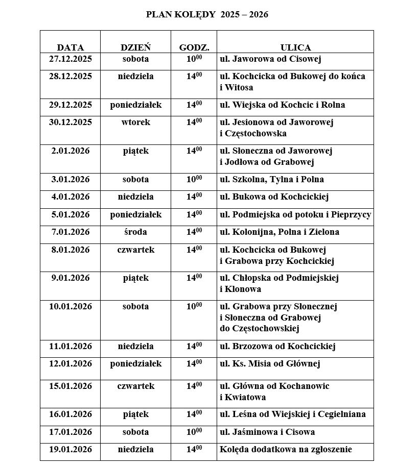 10. Kolekta przyszłej niedzieli przeznaczona jest na kaplicę.